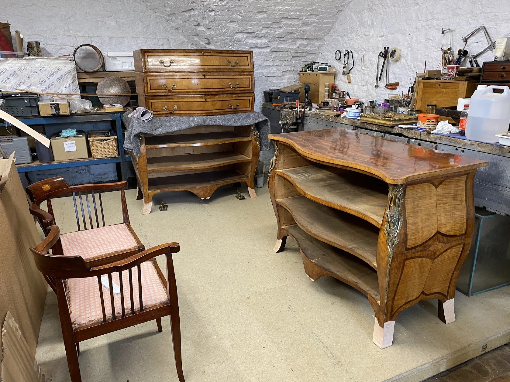 I then stained the veneer to create a perfect colour match, then polished and waxed it up to build a rich patina to match the rest of the commode.