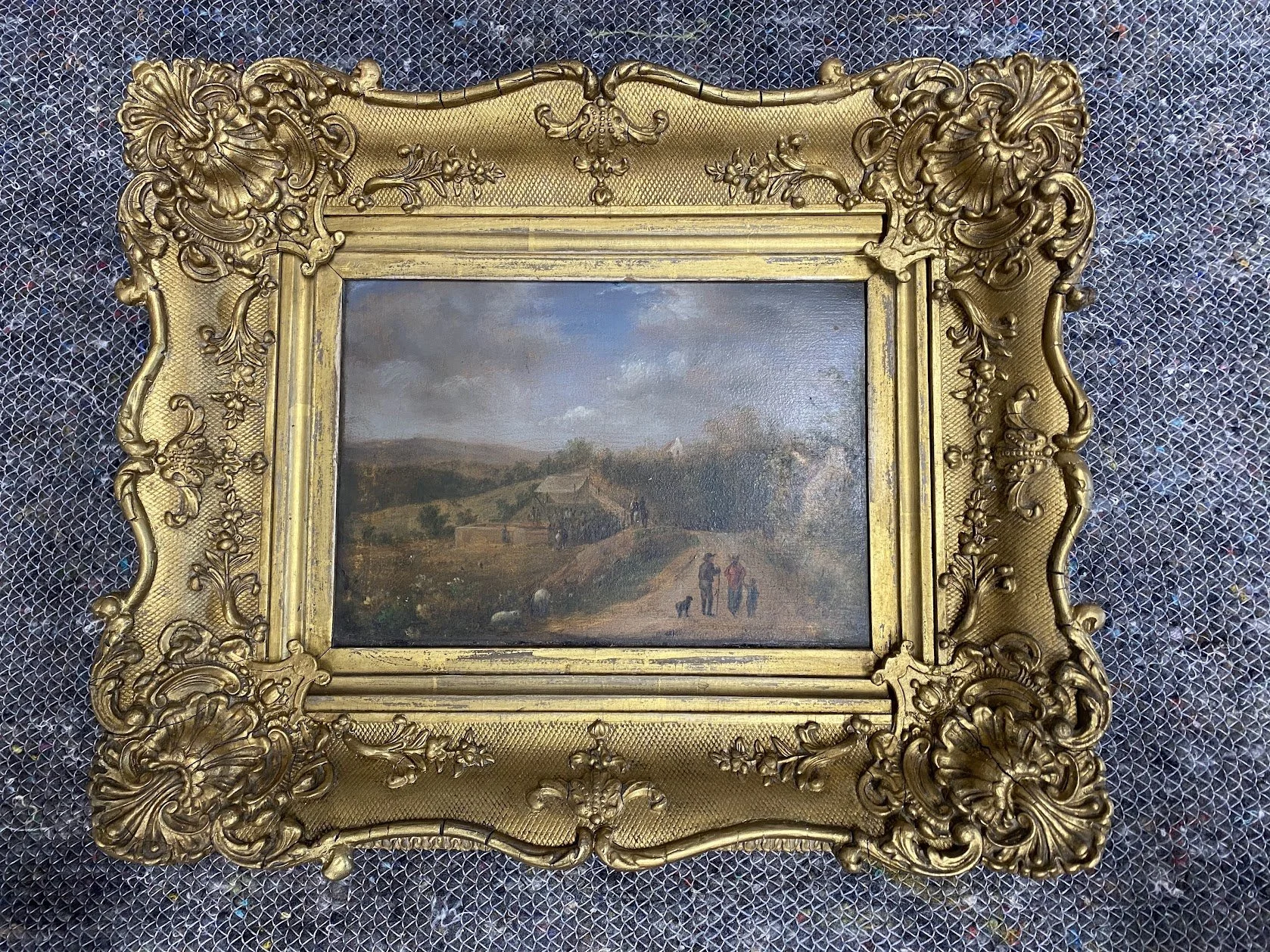 There were many losses / missing pieces to the gilt composition decoration. I made about 30 small missing composition decorations and re-gilded newly made parts and cleaned the whole surface.