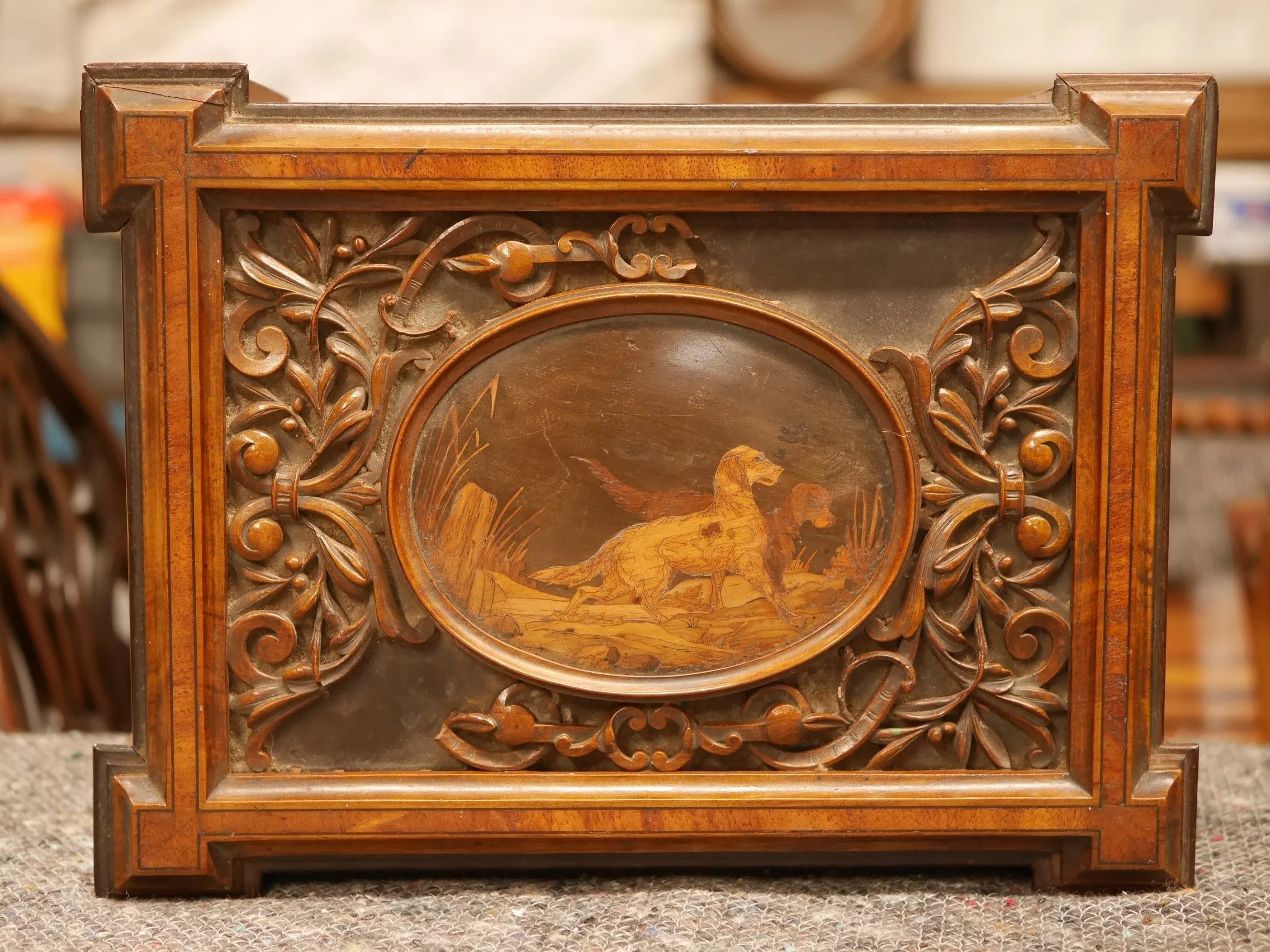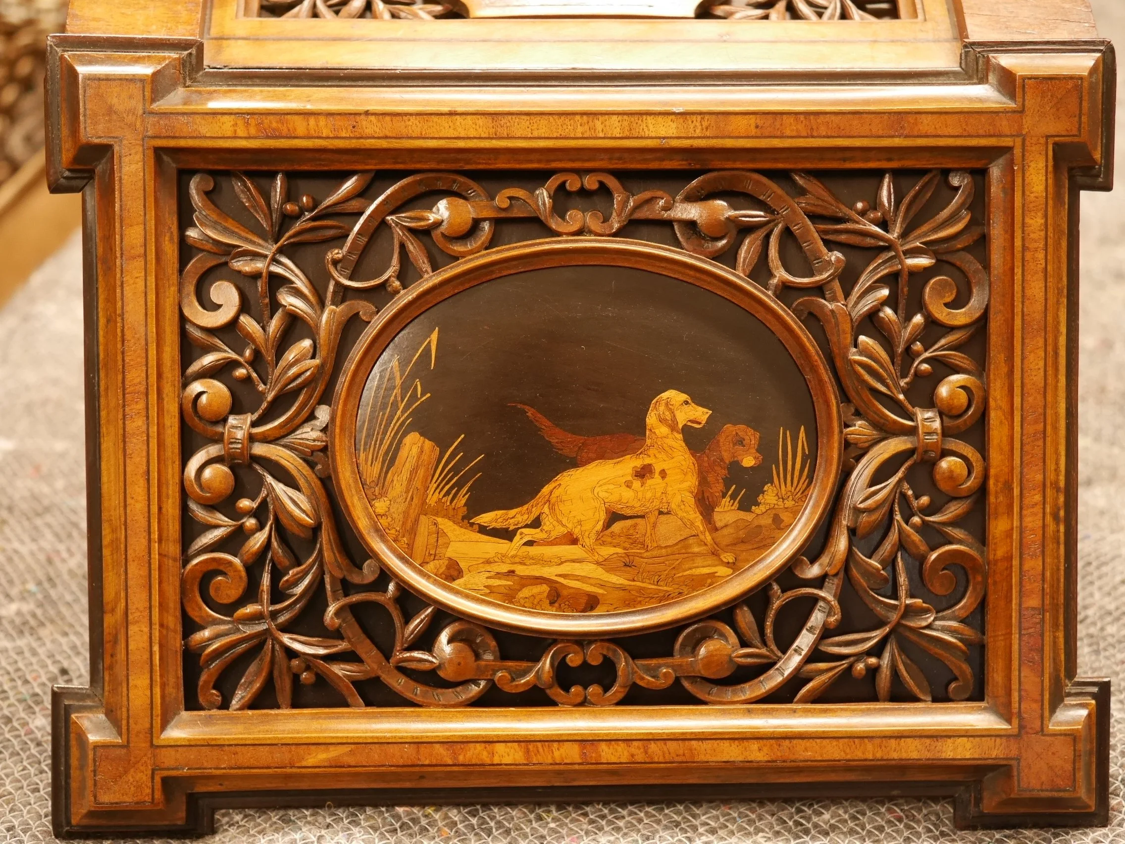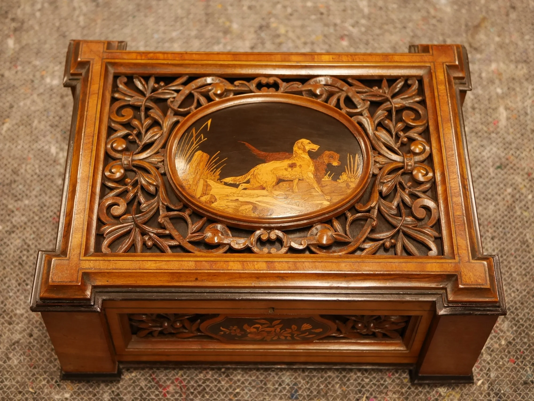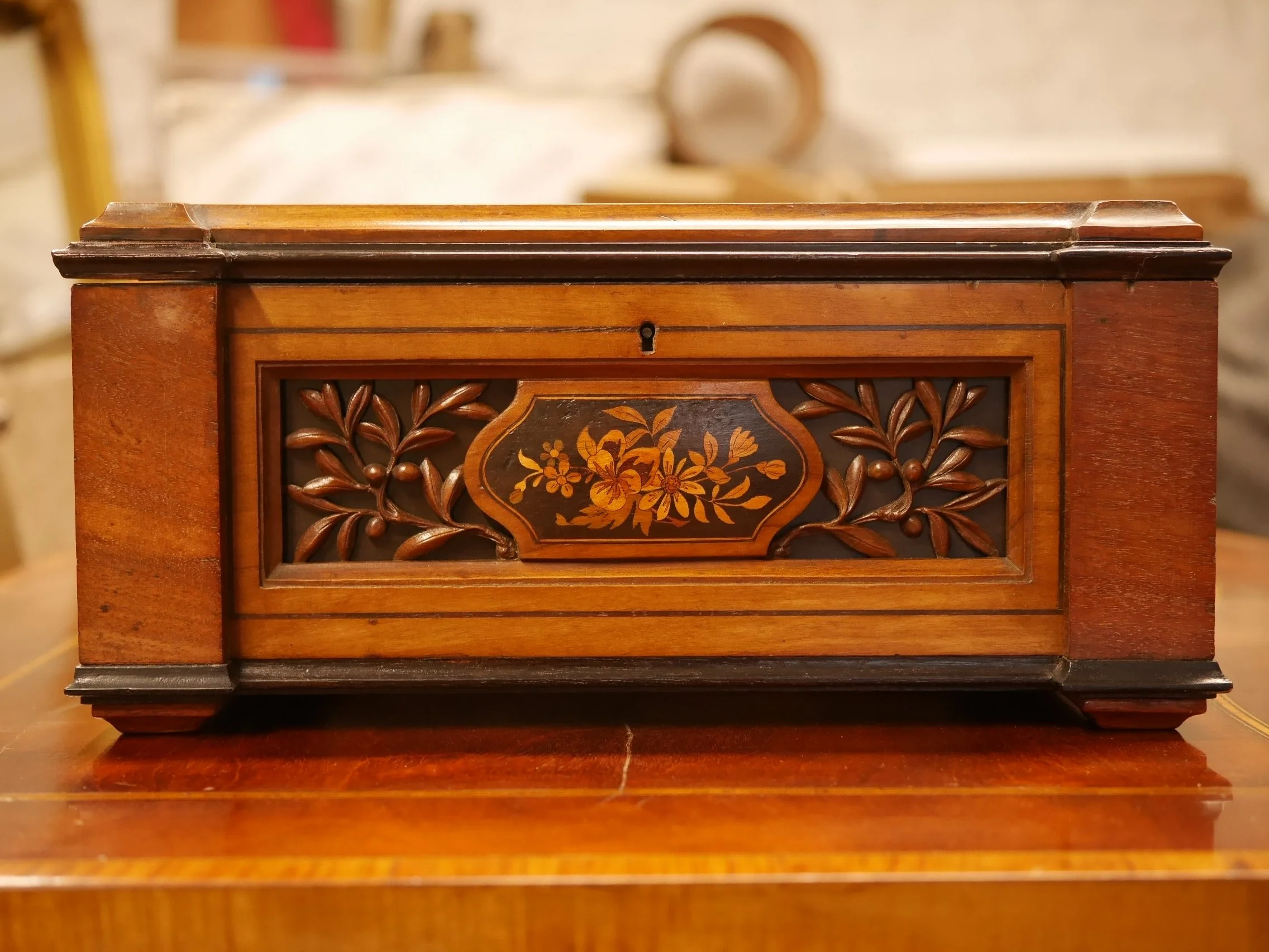 彫刻とマーケトリーが施されたフランス製の箱