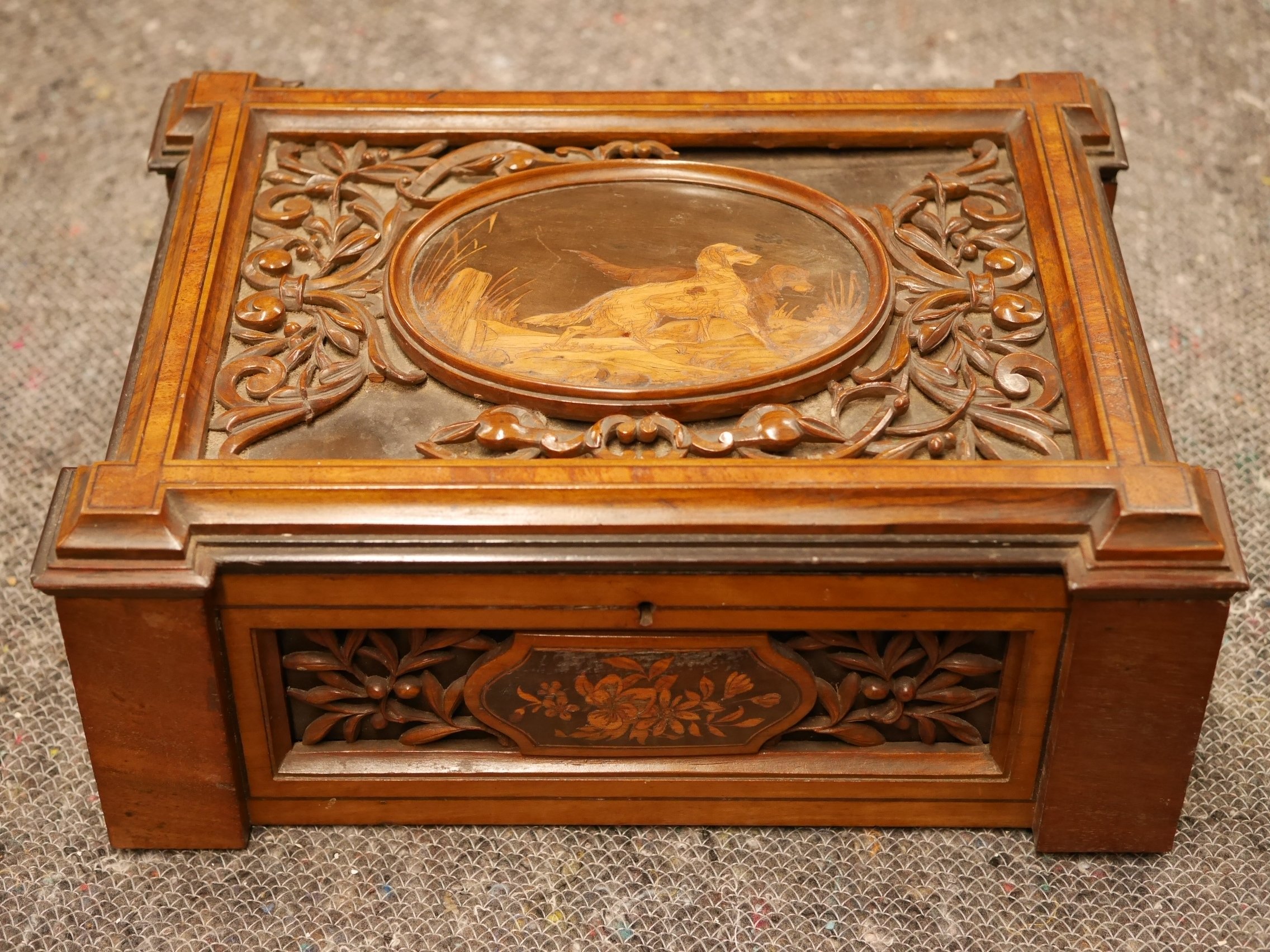 A French Box with carving and marquetry decoration