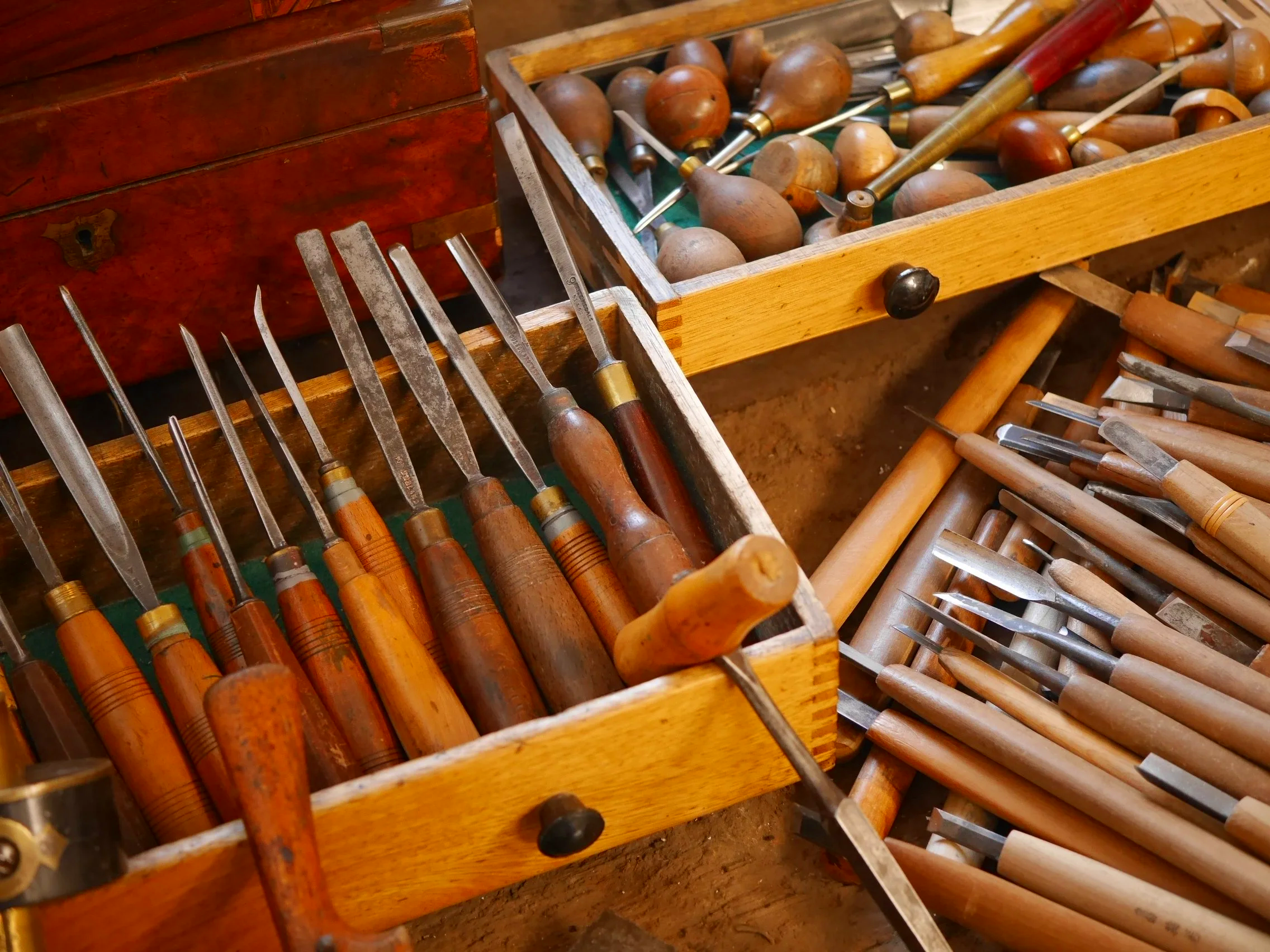 アンティーク家具修復、塗装(フレンチポリッシュ)、彫刻、象嵌細工(インレイ)、寄木細工(マーケトリーとパーケトリー)、ブール細工(真鍮と鼈甲の象嵌細工)、パピエマシェ、紛失した鍵の製作、金箔張り(ギルディング)、古い模型の修復、修復、コレクタブルな小物のアンティーク、美術品の修復など、幅広いです。西洋アンティークが中心ですが、日本の骨董品、東洋アンティーク、アジアアンティーク、トライバルアート(民族アンティーク)も修復してきました。
