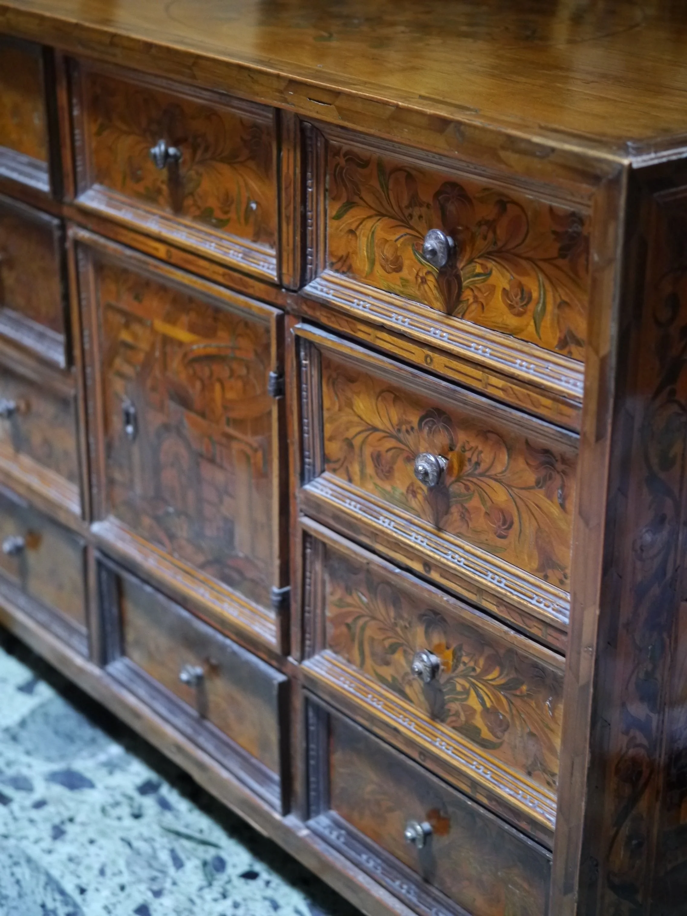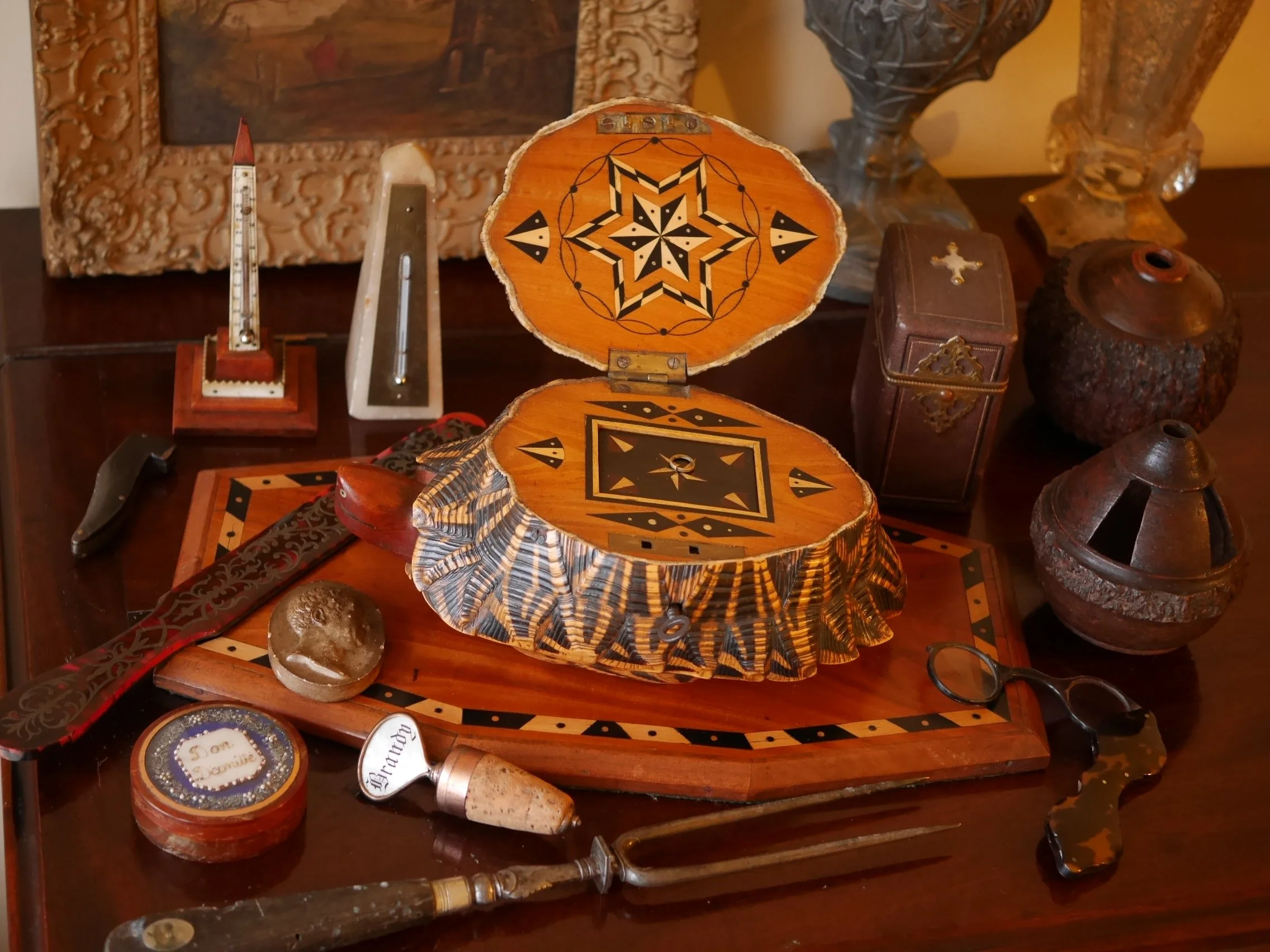 Antique furniture restoration, finishing (French polish), carving, inlay work, marquetry and parquetry, boule work (inlay using brass and tortoiseshell), papier-mâché, making lost keys, gilding, restoring old models, and repairing collectable antique small items and artworks. While Western antiques form the core of our work, we have also restored Japanese antiques, Oriental antiques, Asian antiques, and Tribal Art (ethnic antiques).